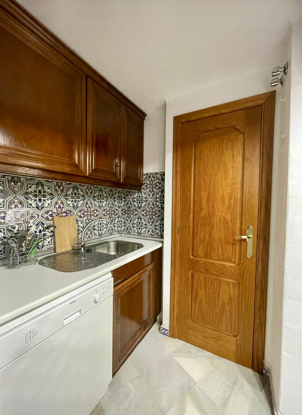 - Zona de día: Un salón luminoso que conecta con una terraza privada con vistas, el lugar ideal para tus desayunos al sol o cenas al fresco. La cocina está completamente equipada, lista para usar desde el primer día.