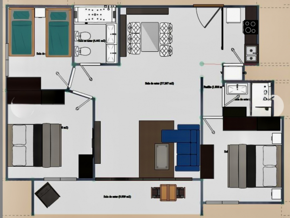 - Zona de noche: Dispone de 3 amplias habitaciones con armarios empotrados y 2 baños completos, ofreciendo espacio suficiente para toda la familia o para recibir invitados con total confort.